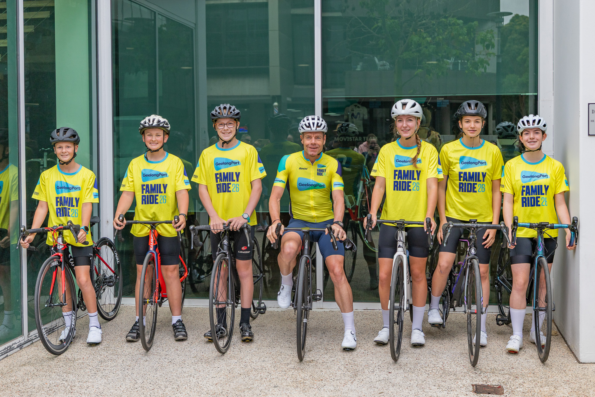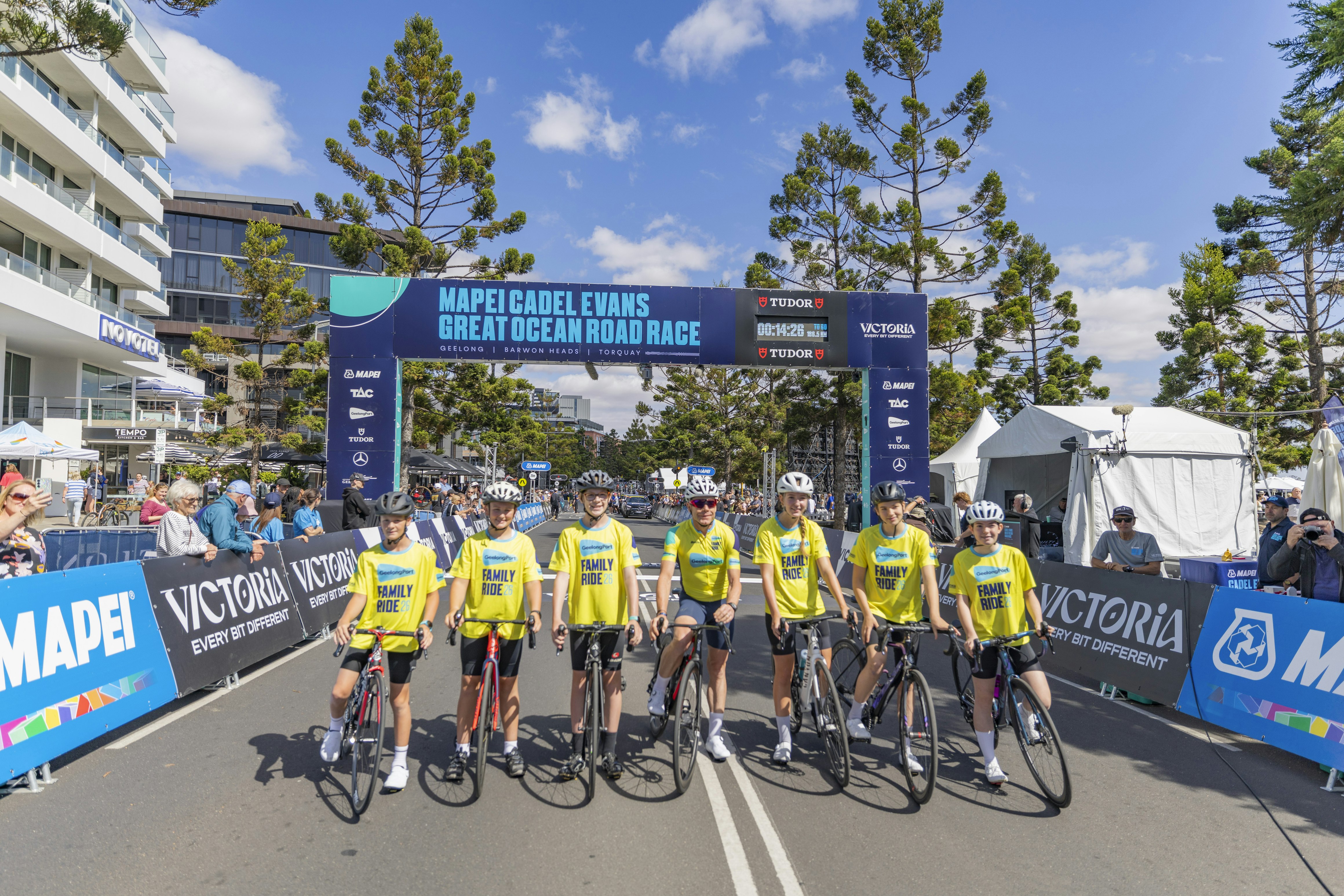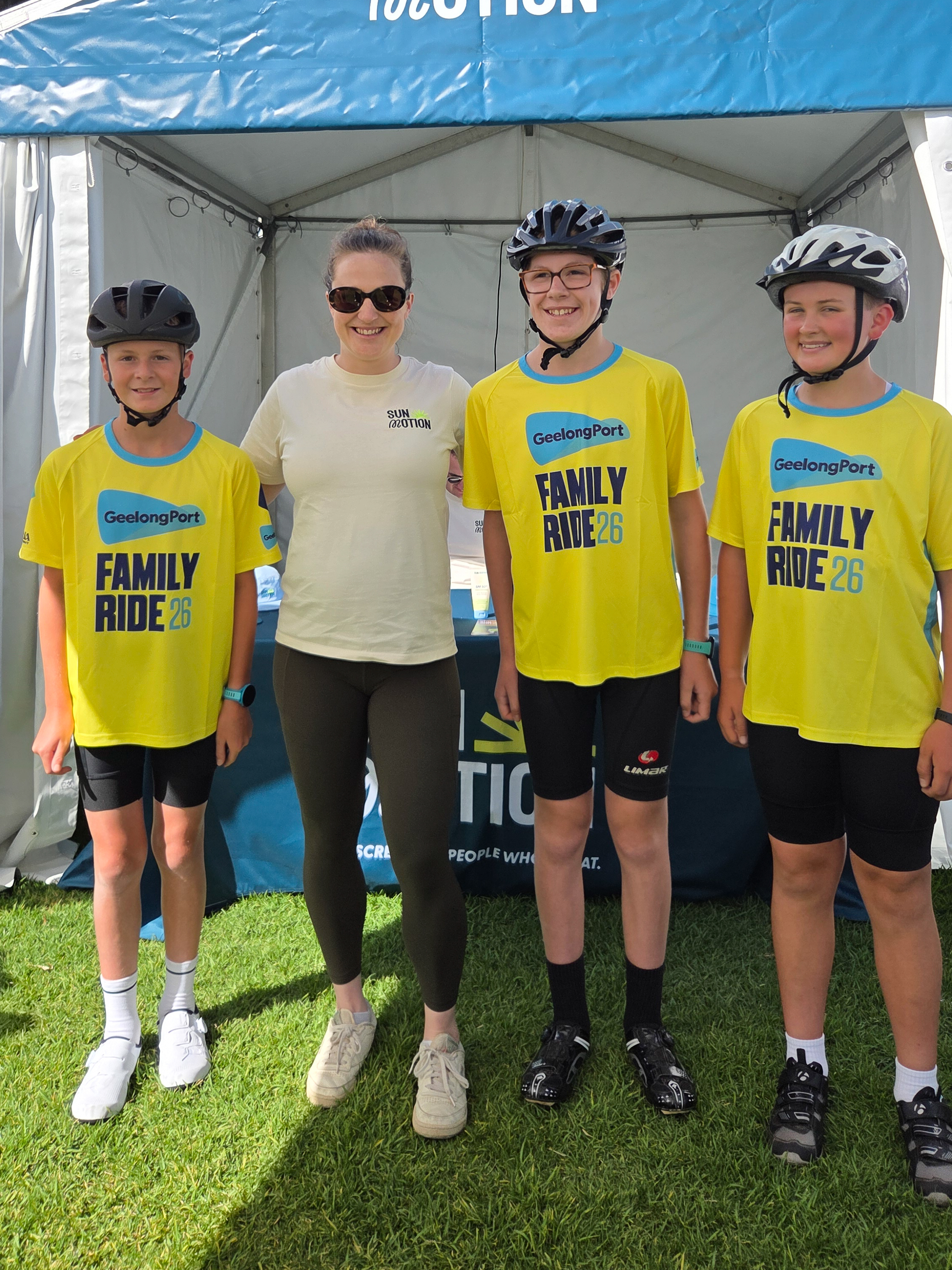 Bentley, Rieley, and Nathaniel lined up beside Australia’s only Tour De France winner Cadel Evans at the start of the Cadel Evans Great Ocean Road Race in Geelong.