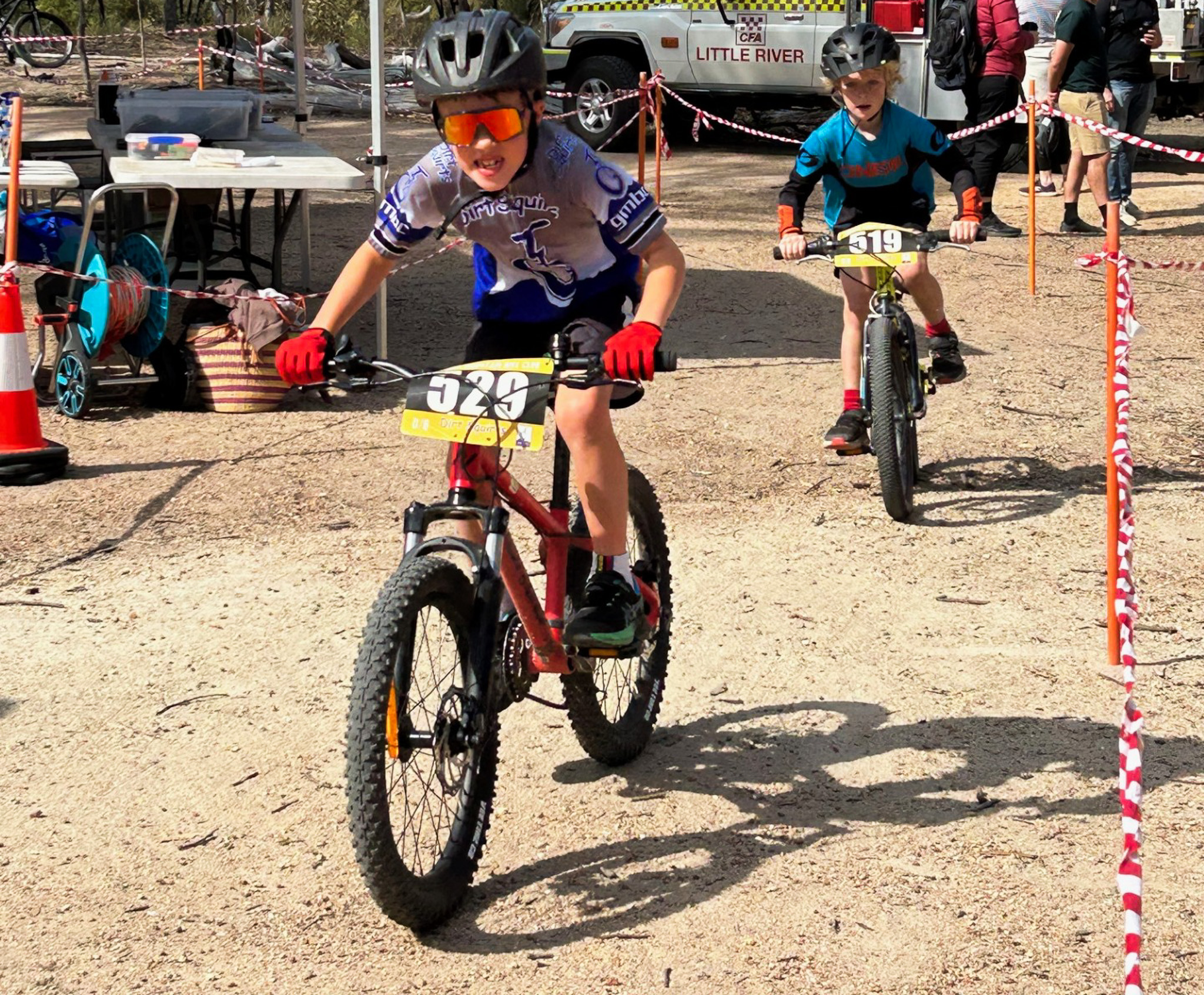 On race day there are four tracks and multiple age groups racing at once, from under-6 through to under-15, and the trails are alive with action.